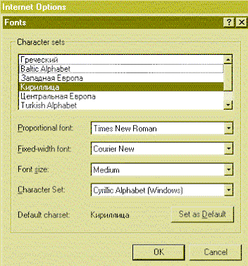 Управлять кодировкой можно посредством View3: Internet_Options10: General1: